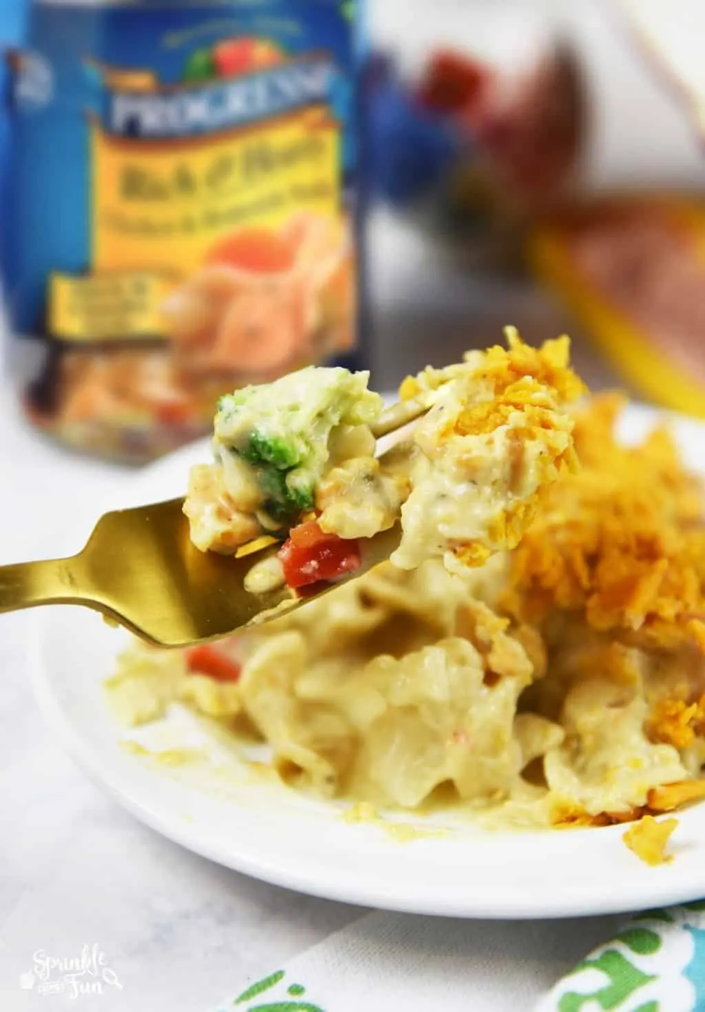 It’s the dish that a lot of us think of when we are in great need of comfort and healing. This “souper” dish I am speaking of is chicken noodle soup, of course! I introduce all my kids early on to the deliciousness of chicken noodle soup! Chicken noodle soup is a warm and hearty soup that I grew up with and I am so glad that they love it too. I like to save time by buying Progresso traditional chicken noodle soup so that we can enjoy it anytime. I also like to experiment with it in other dishes every once in a while because Progresso Rich & Hearty Chicken & Homestyle Noodles soup makes a base to other great dishes. That’s why I always like to keep several cans in our pantry. This Chicken Noodle Soup Casserole with Veggies is just as comforting as the soup version and is easily made with just a few ingredients!