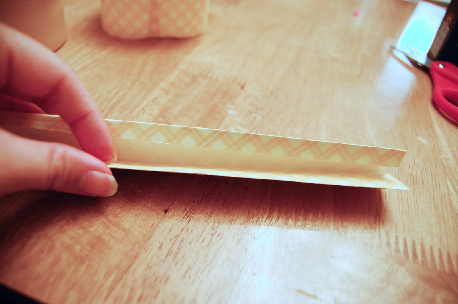 Now start folding a handle… It should be about 1 inch wide and make sure you use enough paper for 4 to 5 folds.