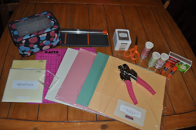 While this complex-looking card may seem overwhelming to the newest papercrafter, it’s actually fairly simple if you take it step by step. First you need to assemble your supplies. In addition to the specific things listed below, make sure you have basic papercrafting supplies like scissors, a paper trimmer, a bone folder (or other scoring device), an eyelet setter (and 3 eyelets)