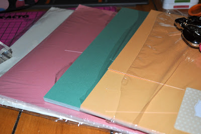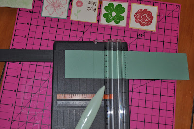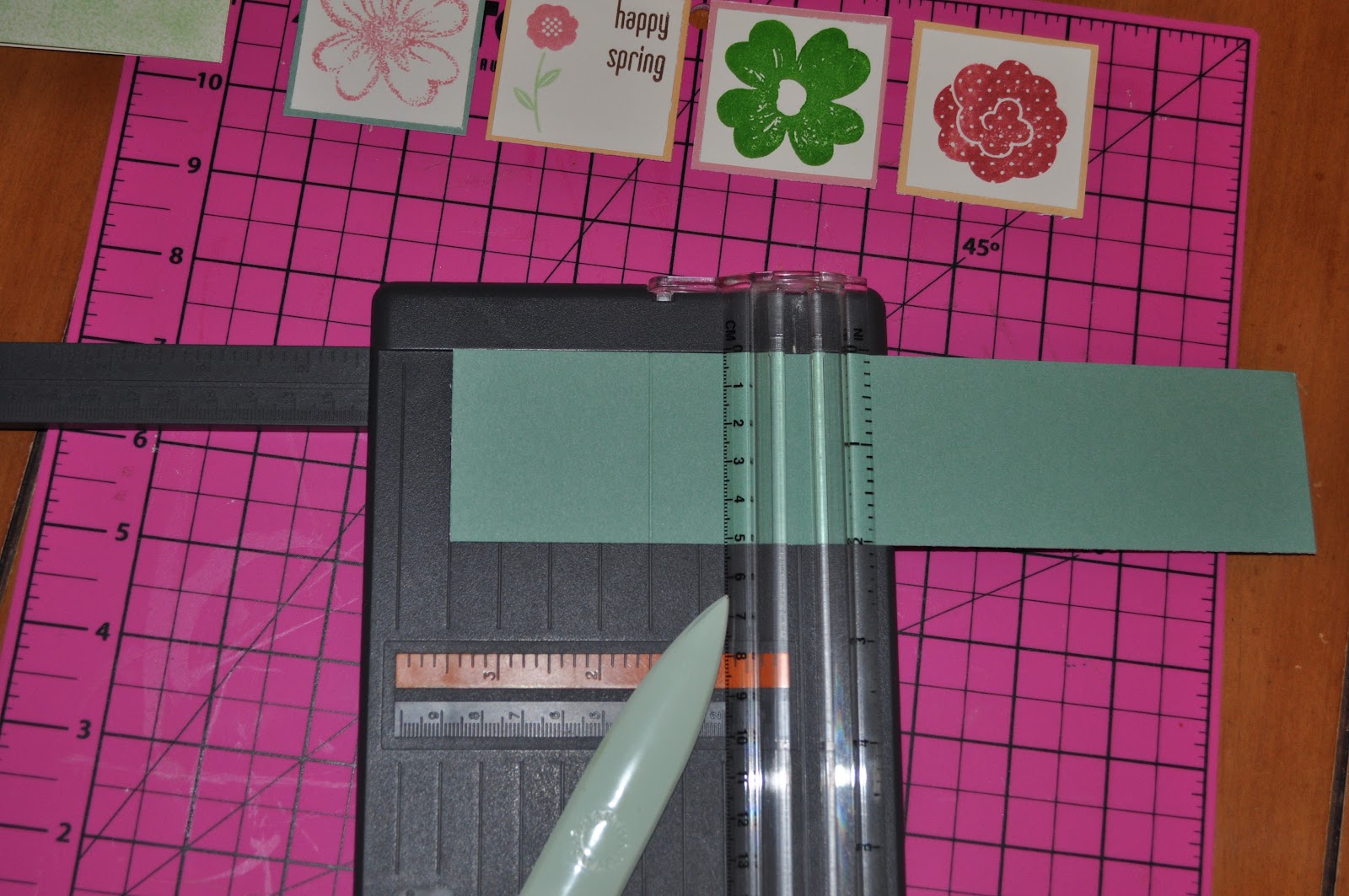 You will need a few different colors of cardstock. For the best color combinations, choose at least three colored cardstock sheets, and one neutral sheet. I’m using mostly Close To My Heart products in this tutorial. These colors are Colonial White, Blush, Juniper, and Creme Brulee.