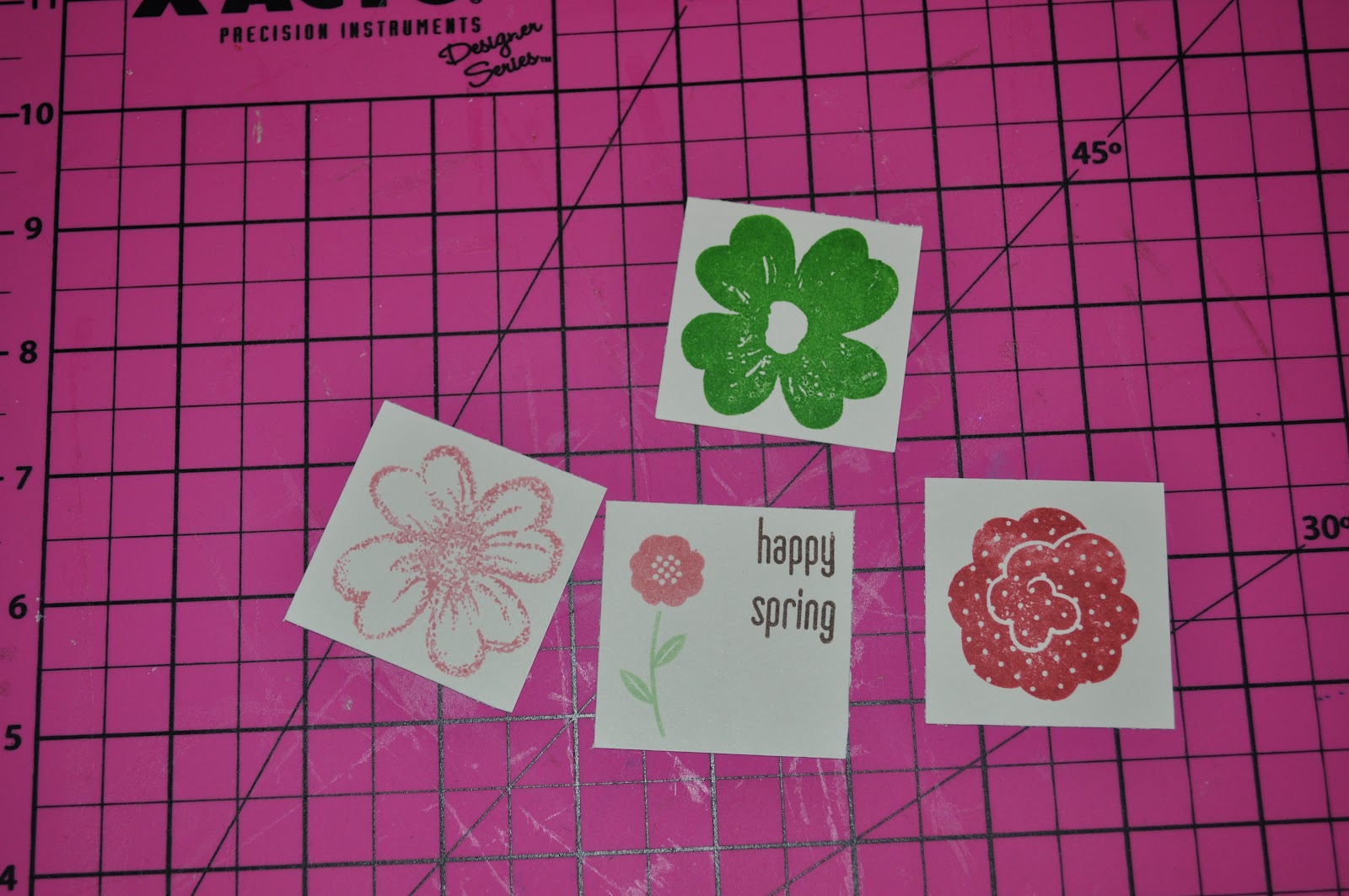 Choose some stamps (or stickers if you don’t have stamps). You will use these on the four small squares on the front of the card.