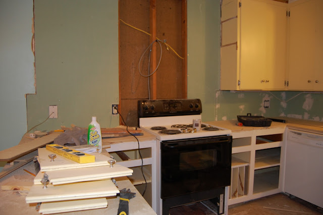 It took us a long time in this stage. We finally got a new sink in and I could start cooking once again. Over the next few months we slowly started getting everything back together and the new stuff put in. Don’t let anyone fool you… DIY takes a LONG TIME!!! I can say it was totally worth it though… here are the pics of the kitchen in the process. Tomorrow I will post pics of the finished kitchen!