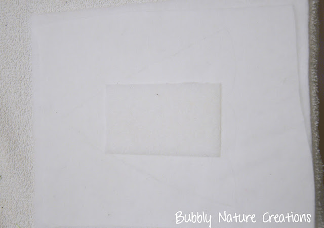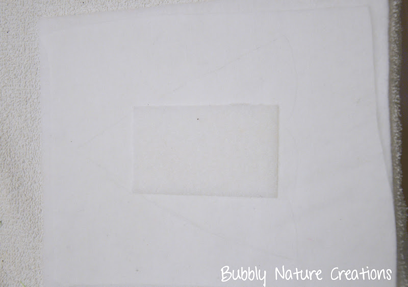 Last step for the dress now… Sew the velcro or hook and loop onto the middle where you want your applique to go… Make it as big as you like keeping in mind that when the appliques go on you do not want to see velcro sticking out from behind it, but keeping it big enough to get a good stick for the applique. I also applied some fusible web to the inside of the dress before sewing on the velcro.