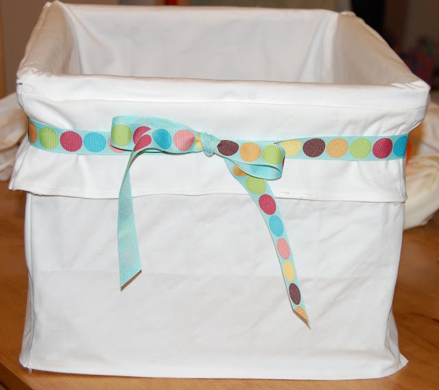 I’ve been searching for a cheap but cute way to store Elise’s clothes… and I found it! Milk crates with a slipcover. I used the tutorial found here. I love how it turned out!