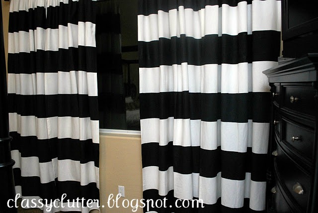 This is a Tutorial for DIY Stripe Curtains using Freezer Paper! These turned out SO bright and fun!!! I love them! Go over to Classy Clutter to see how they tie into the rest of her room… just gorgeous!