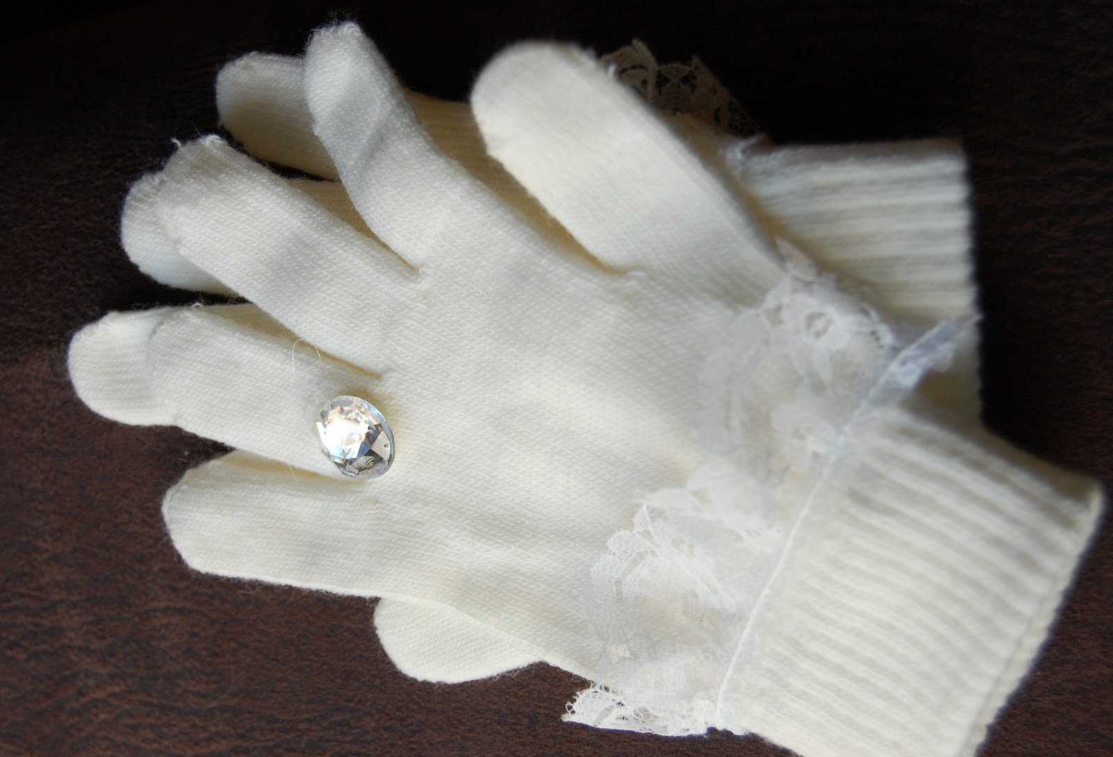 Here is a little project that I have been working on… I am calling these “Glam Gloves”. This would be perfect for a little girl or big girl… I made these for myself!!! 🙂 I think they scream girly and romantic at the same time… great for Valentine’s Day!