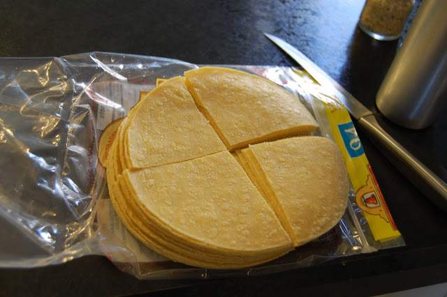Preheat oven to 425.  Cut up tortillas into 4 sections. Spray lightly with Misto and sprinkle seasoning. Bake 10 minutes or until they are starting to brown.