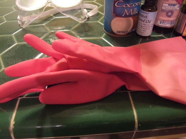 Here are all the tools to make your homemade soap… and yes that is crystal drain opener a.k.a. 100% lye- you can’t make soap without it! There are various recipes you can use, but this is a good one to get started with.
