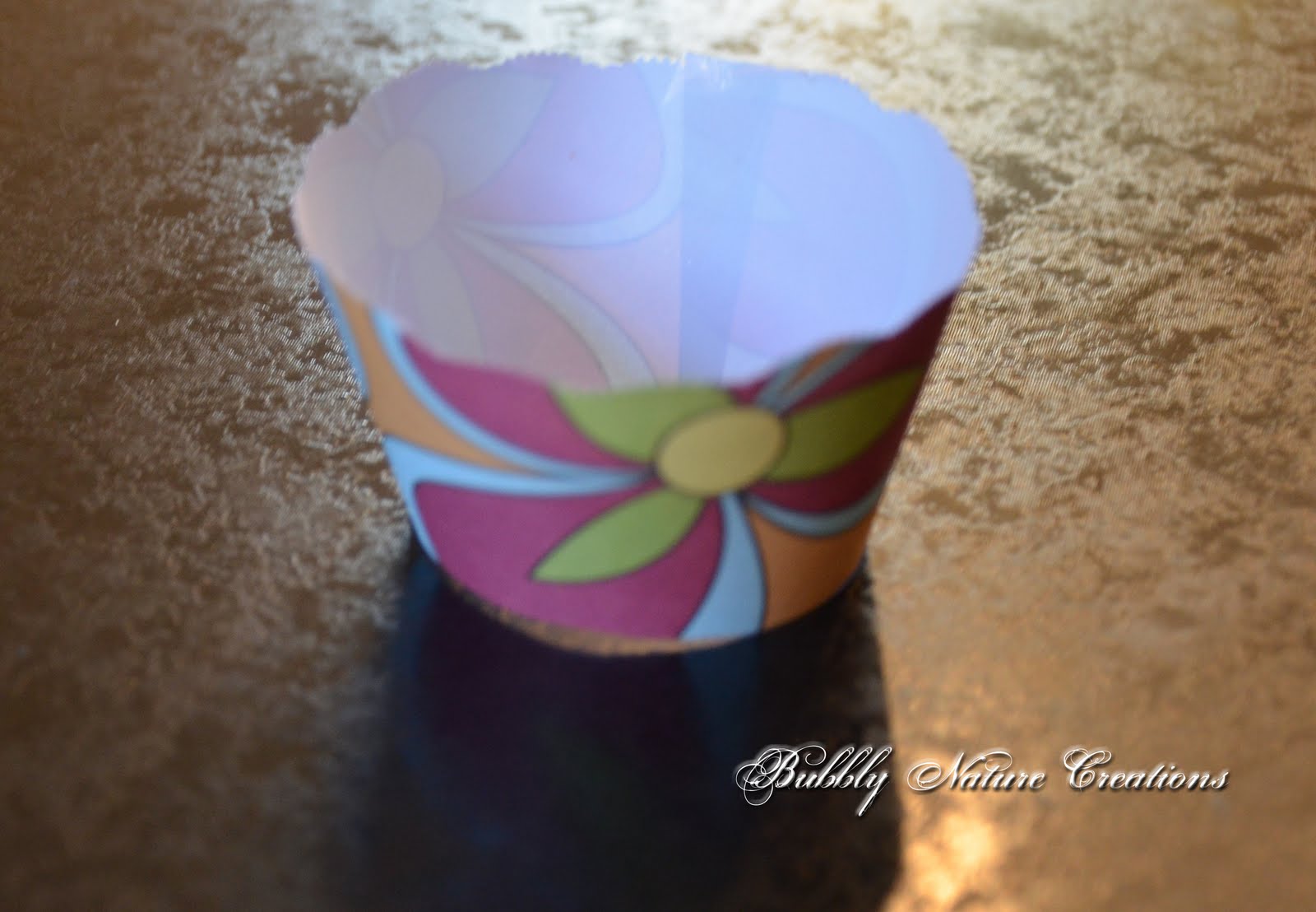 Cut out the Cupcake Wrappers by using the one you printed as a template. I used pretty scrapbook paper and fancy paper cutters for the top edge.