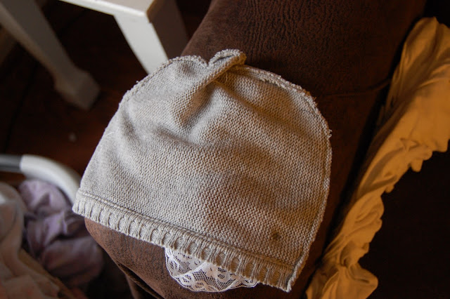 Lace and feathers make this adorable beanie look like it was from an era gone by. I made this using scraps I had around the house. Here is the tutorial.