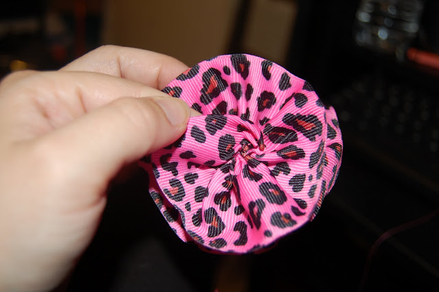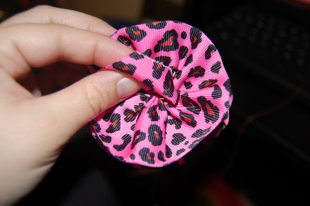 I used 1.5 inch grosgrain ribbon and sewed fairly large stitches across the top. I did not cut the ribbon off the spool until I reached the desired amount of gathers.