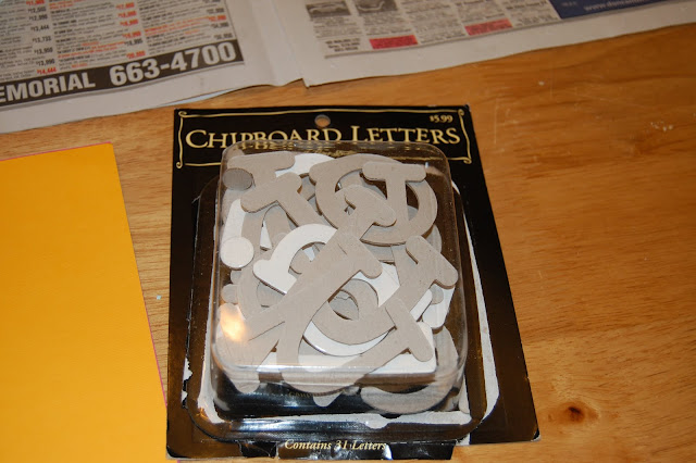 grab the chipboard letters… these are from Hobby Lobby and come with one side covered in glossy whie.