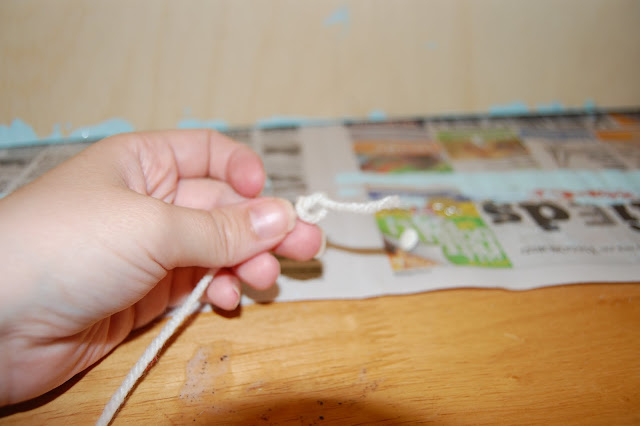 now that you are finished… hang it on the wall… I used yarn and tacks on the back of the picture (if using thin canvas do not use tacks they will go through… use a pop can tab and hot glue it to the back- then you have your hook!)