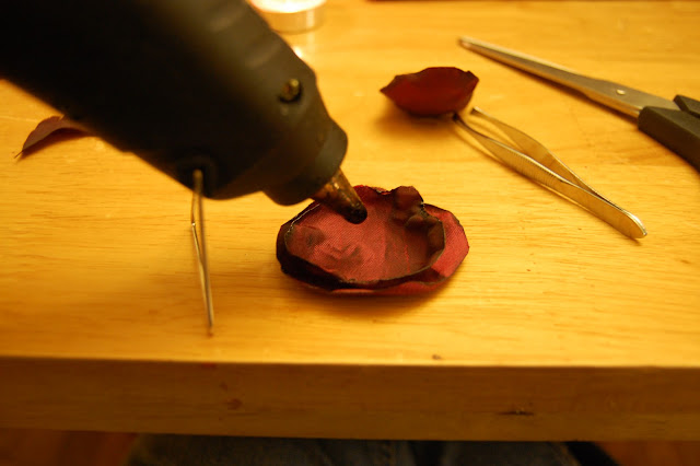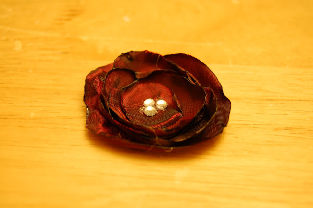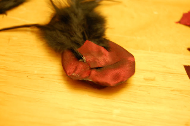 Finish it off with another piece of material over the feathers. To this glue a pin or hair clippie.