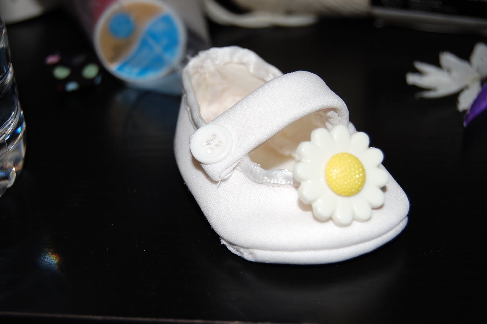 They are finished! Much to my surprise the second bootie went much quicker… in fact it went so quickly that I am considering making more of these… I would use different materials next time because the top material is pretty stretchy- (my biggest problem), but overall I think they look great… and so versatile! See the little loop in the pic below… that is how I can change out the ribbons and flowers to match different outfits… I can’t really give a tutorial for this- mainly because I took a lot of… um… creative liberties… (aka I don’t actually know how I did it)…LOL!!! I used this TUTORIAL to go off of though… so if you want to make your own that is a good place to start!